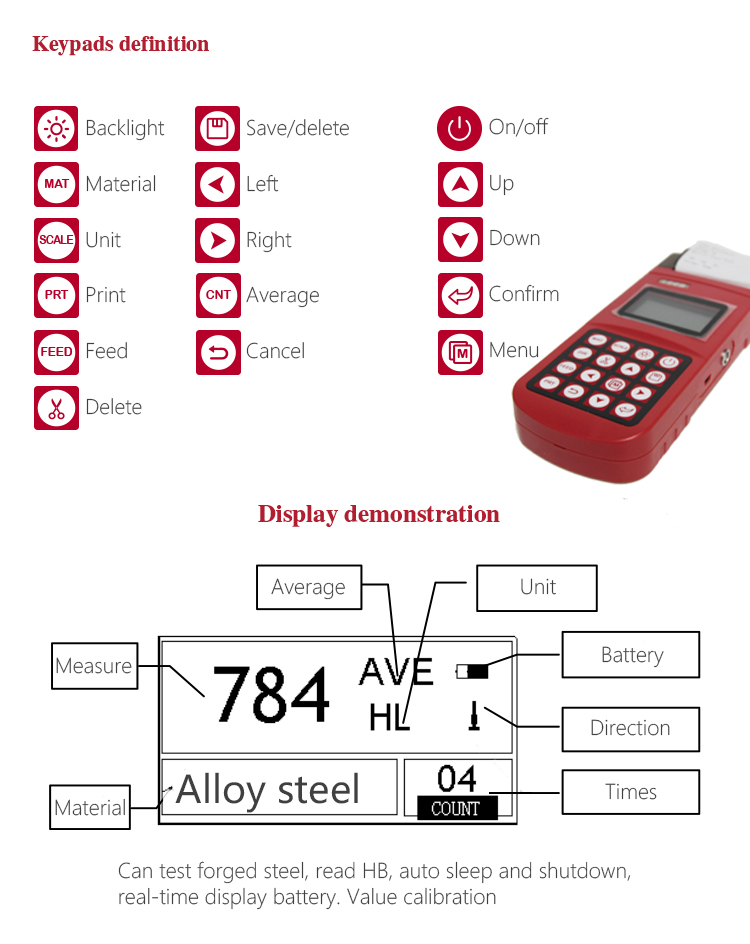 l Support Steel ,when using D/DC sensor to test steel,it can show HB directly.