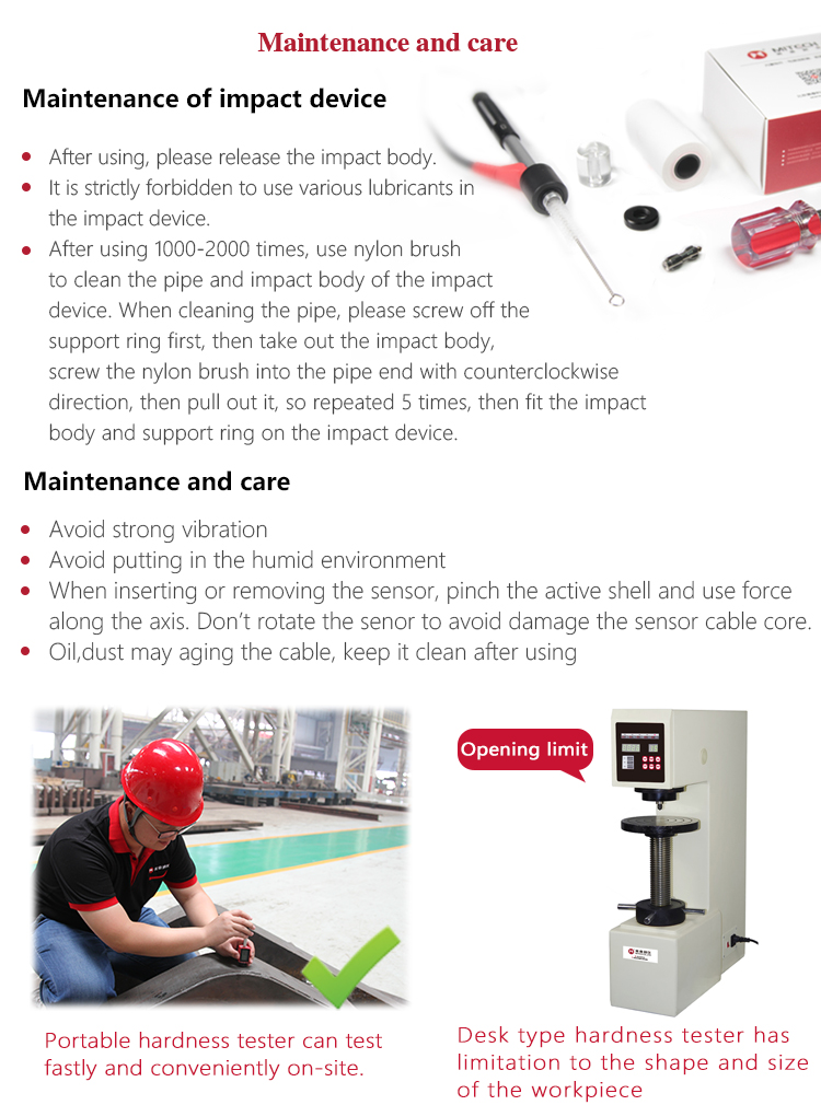 | Mitech Series portable leeb hardness testers with customized attached files including product certificate, warranty card, product manual, packing list. The attached files adopt the special printed paper. The manual is with graphic design, beautiful, easy to understand, easy to save for a long time. Note: The electronic version of Mitech attached files can be downloaded from www.ssjdq.com.cn. |