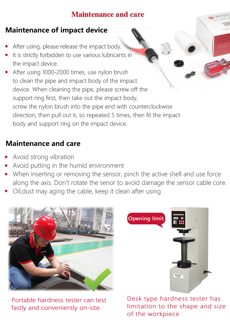 | Mitech Series portable leeb hardness testers with customized attached files including product certificate, warranty card, product manual, packing list. The attached files adopt the special printed paper. The manual is with graphic design, beautiful, easy to understand, easy to save for a long time. Note: The electronic version of Mitech attached files can be downloaded from www.ssjdq.com.cn. |