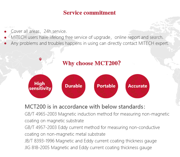 | Mitech coating thickness gauge with customized packing documents including product certificate, warranty card, product manual, packing list. The packing documents had used the special printed paper. The manual is with graphic design, beautiful, easy to understand, easy to save for a long time. Note: The electronic version of the packing documents for Mitech series products can be downloaded from www.ssjdq.com.cn. |