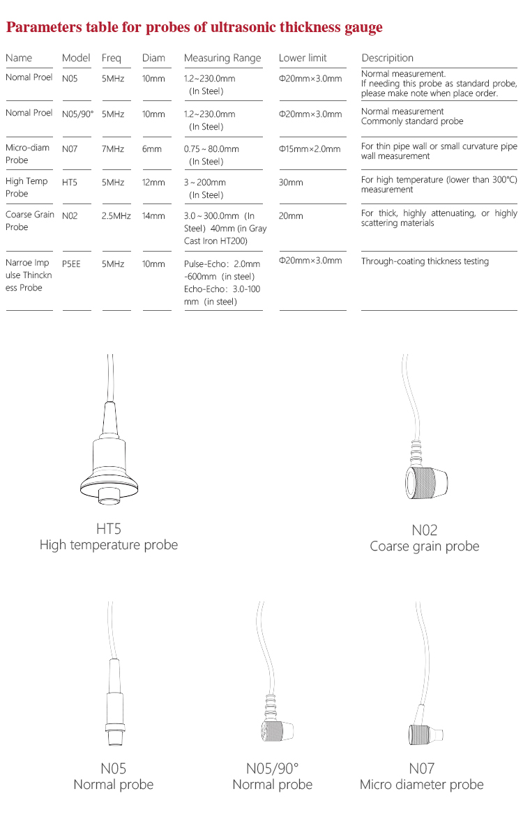 | Probe Diameter | Standard N05 is10MM、Probe N07 is 6MM、Probe HT5 is12MM、Probe N02 is12MM |