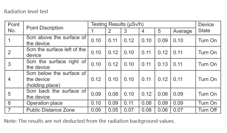 l Consistent with GBZ115-2002, GB18871-2002 and other relevant domestic and foreign standards, the radiation performance of the instrument is safe and reliable.