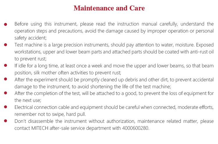 Don’t disassemble the instrument without authorization, maintenance related matter, please contact MITECH after-sale service department with 4000600280.