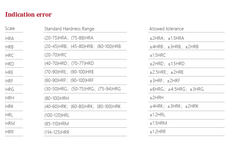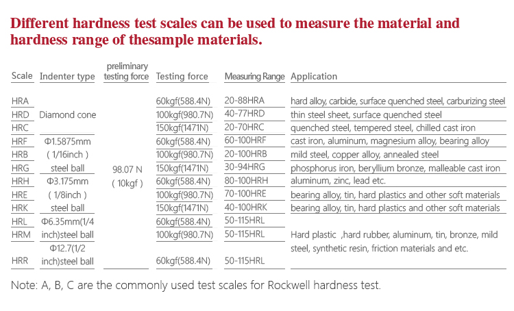 | Rockwell scale | HRA、HRB、HRC、HRD、HRE、HRF、HRG、HRH、HRK、HRL、HRM、HRP、HRR、HRS、HRV |
