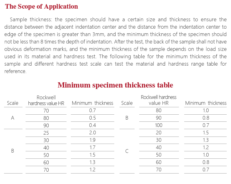 In the formula, c is a constant (for HRC, HRA, c is 0.2; for HRB, c is 0.26). The Rockwell hardness value HR obtained is an unknown number which is usually read directly on the test machine indicator when testing.