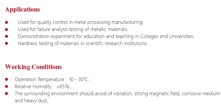 Instrument Featuresl Widely used for high-precision hardness testing for parts with a variety of metal and non-metallic materials;