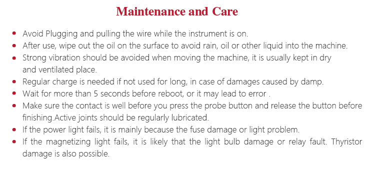 l Make sure the probe is well connected with surface of workpiece, then press the key to magnetize, the result is in good situation.