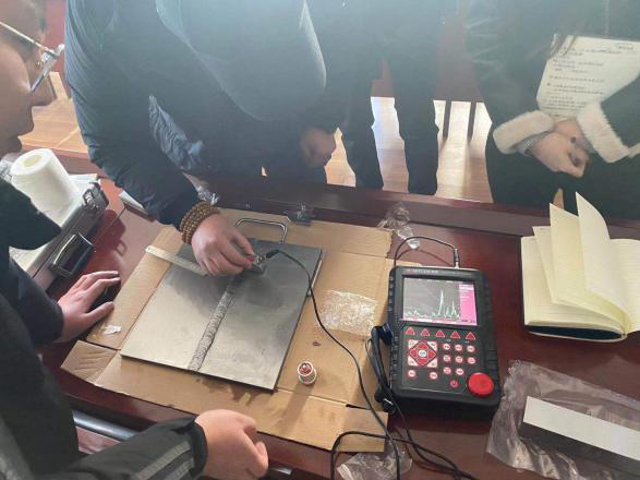 美泰工程師首先為現(xiàn)場技術(shù)人員詳細講解了設(shè)備的功能作用、工作原理、操作使用、相關(guān)配置說明、維保注意事項等,普及理論知識和檢測常識后,現(xiàn)場指導(dǎo)使用人員的實際上手操作。美泰超聲波探傷儀MUT550B,人性化設(shè)計輕松操作,設(shè)有細致入微的步驟操作提示功能,僅需要做出是與否的簡單判斷,即可根據(jù)每一步提示,完成復(fù)雜的調(diào)校,綜合閘門自動報警等功能,真正實現(xiàn)“傻瓜式”無漏檢探傷,是初學(xué)者的明智之選。
