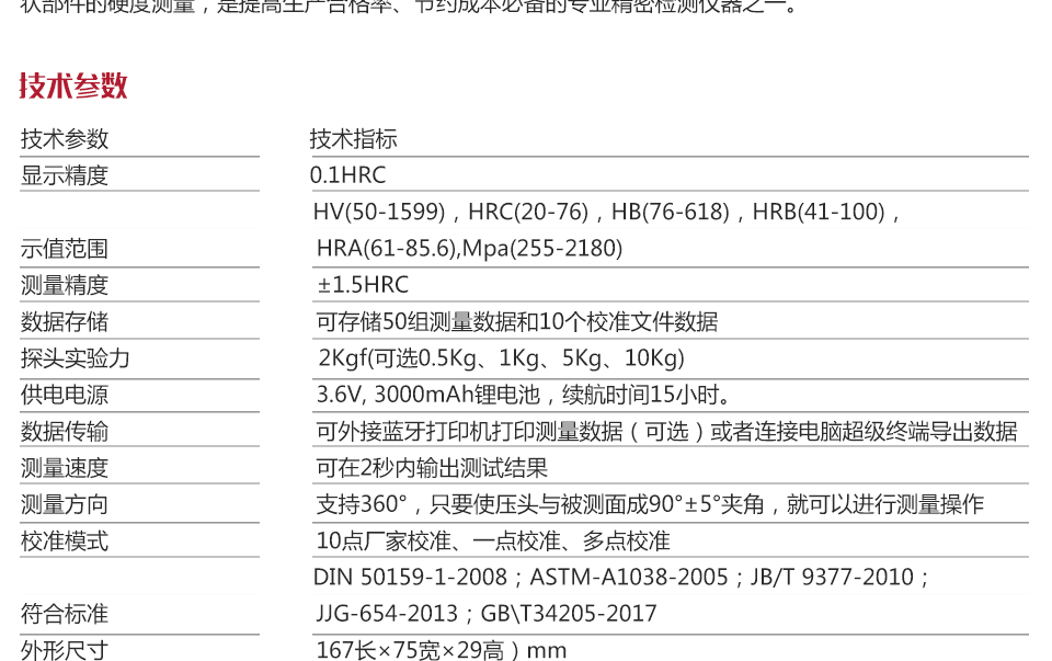 | 測量精度 | ±1.5HRC |