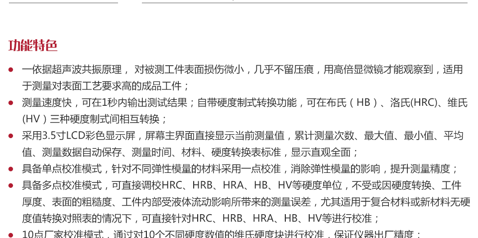 儀器特點(diǎn)依據(jù)超聲波共振原理,對被測工件表面無壓痕損傷,適用于測量對表面工藝要求高的成品工件;