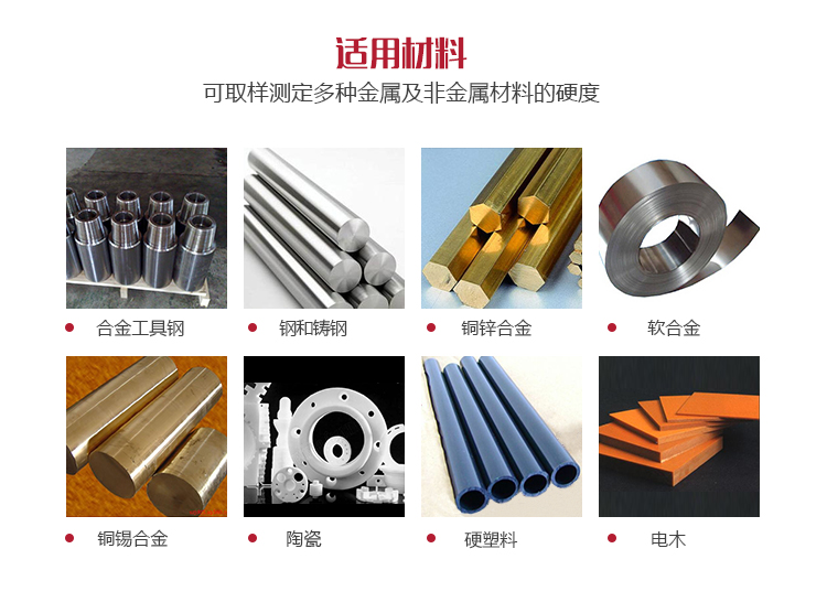 | 洛氏測試范圍 | HRA:20-96、 HRB:20-100、HRC:20-70、 HRD:40-77..............HRL:50-115、HRM:50-115、HRR:50-115 |