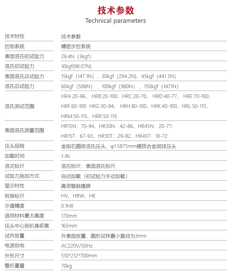 | 壓頭規(guī)格 | 金剛石圓錐洛氏壓頭,φ1.5875mm硬質(zhì)合金鋼球壓頭 |