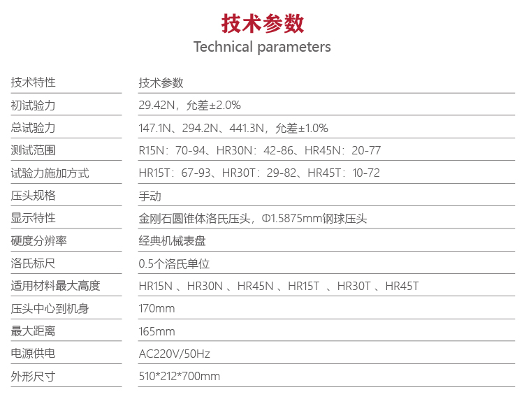 | 壓頭規(guī)格 | 金剛石圓錐體洛氏壓頭,Φ1.5875mm鋼球壓頭 |
