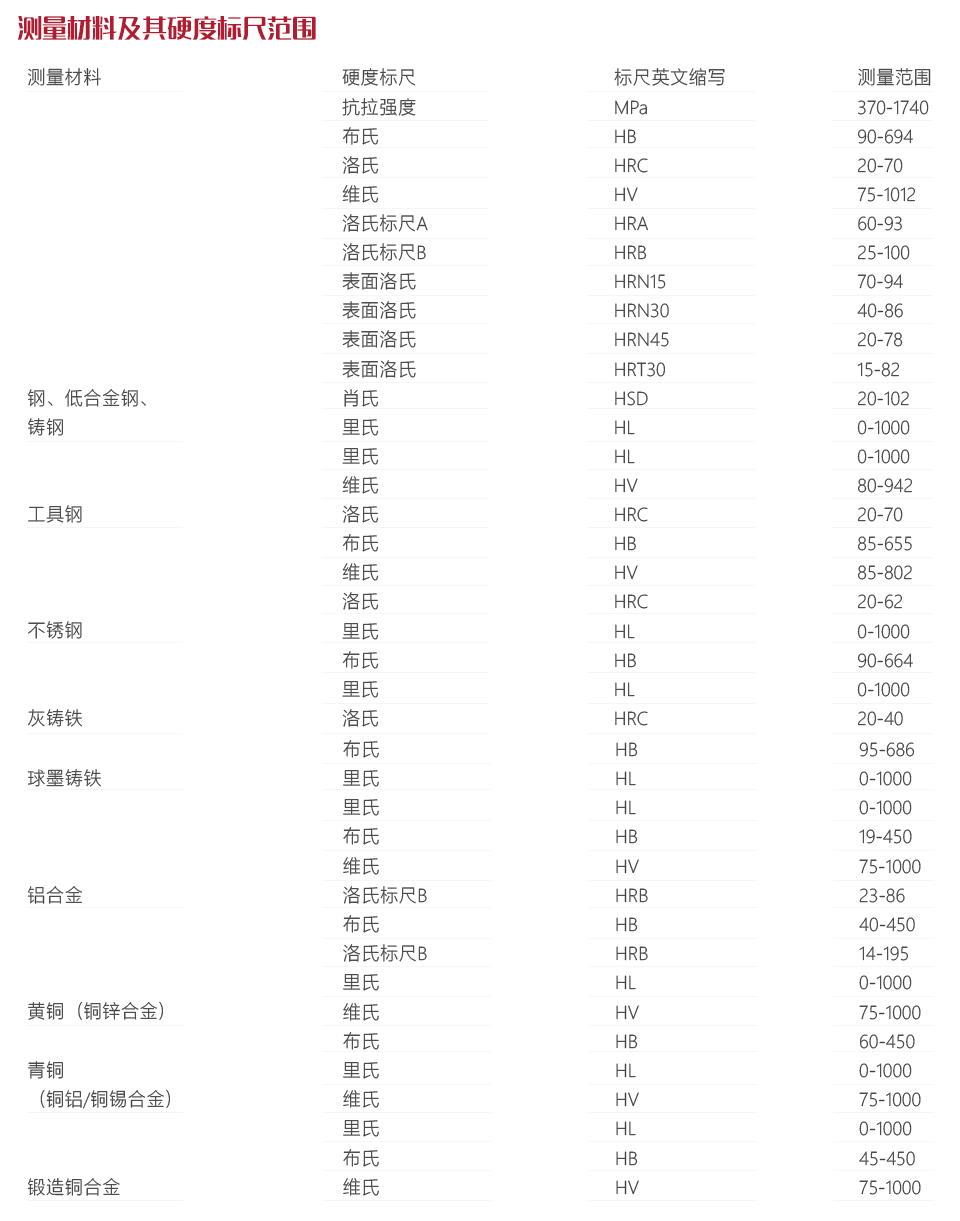 ?可將測(cè)量結(jié)果換算成符合ASTM E140和ISO 18265的標(biāo)準(zhǔn)硬度標(biāo)尺。