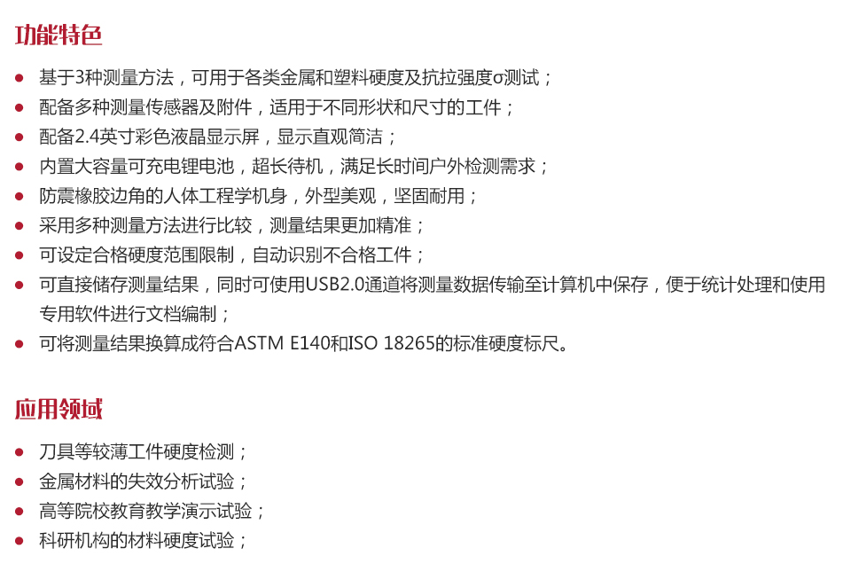 儀器特點(diǎn)?基于3種測(cè)量方法,可用于各類金屬和塑料硬度及抗拉強(qiáng)度σ測(cè)試;