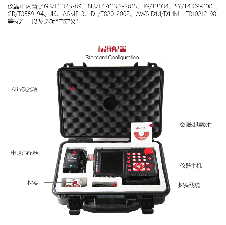 | 探傷標(biāo)準(zhǔn) | 內(nèi)置各行業(yè)常用探傷標(biāo)準(zhǔn),直接調(diào)用,方便、快捷 |