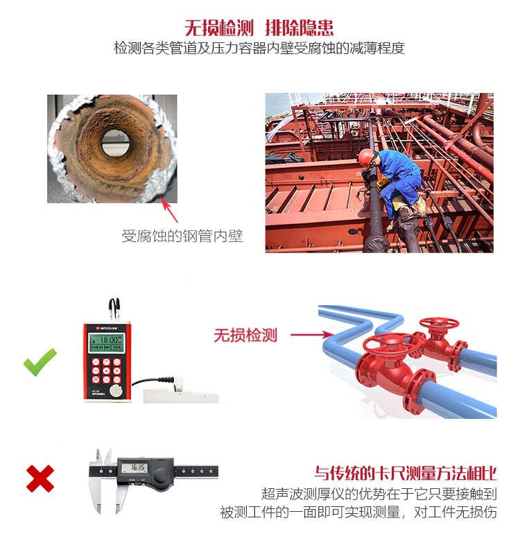 功能用途適合測(cè)量金屬(如鋼、鑄鐵、鋁、銅等)、塑料、陶瓷、玻璃、玻璃纖維及其他任何超聲波的良導(dǎo)體的厚度