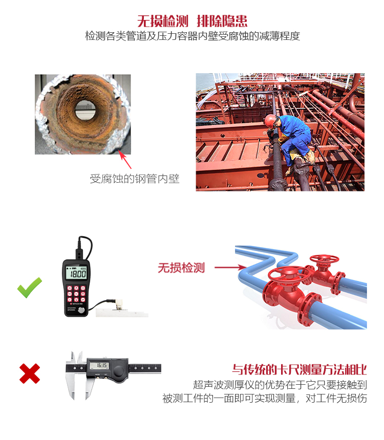 功能用途適合測量金屬(如鋼、鑄鐵、鋁、銅等)、塑料、陶瓷、玻璃、玻璃纖維及其他任何超聲波的良導(dǎo)體的厚度