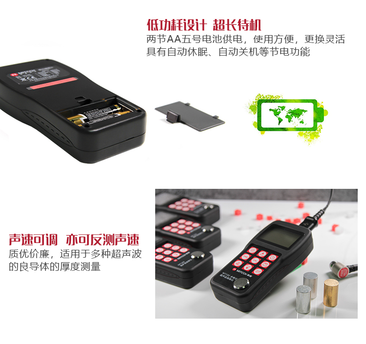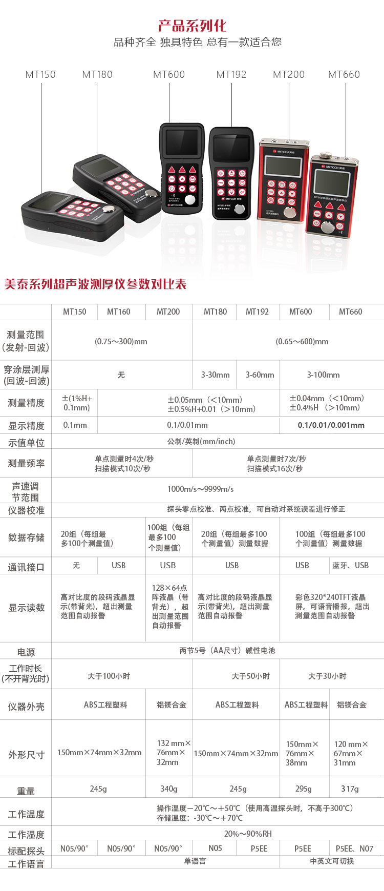 | 美泰系列超聲波測厚儀,均采用低功耗設(shè)計理念,超長待機(jī),MT150/MT160/MT200/MT180/MT192/MT280/MT600/MT660均由兩節(jié)AA五號電池供電、更換方便。 | |