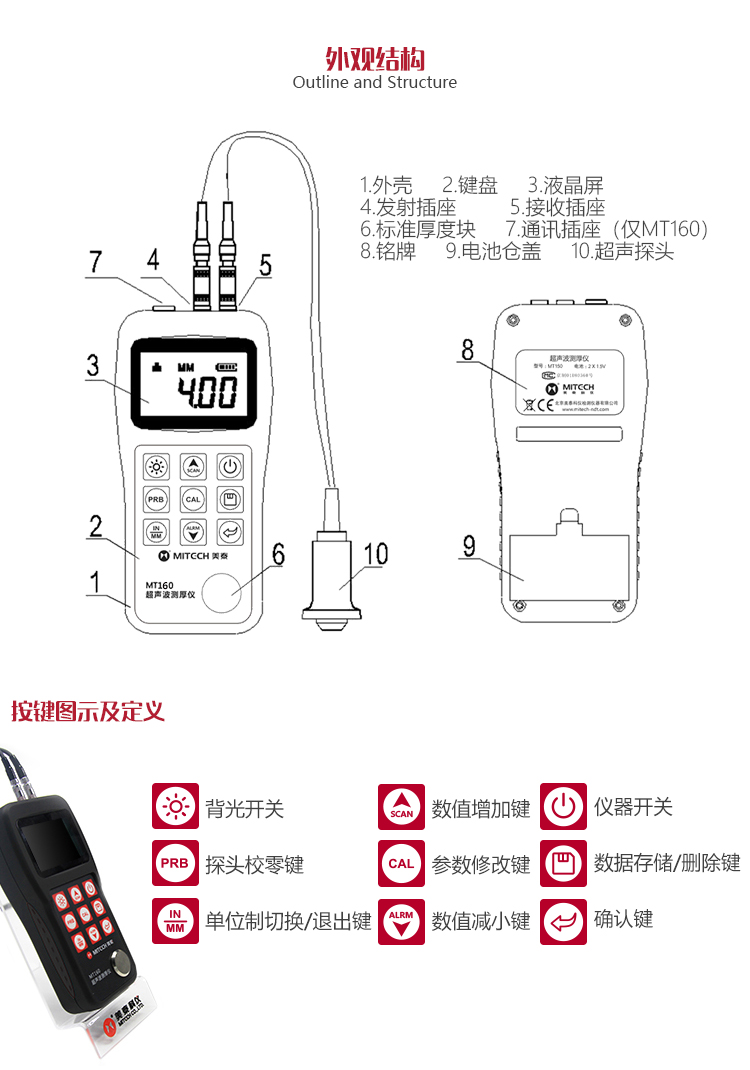 | 測(cè)量范圍 | (0.75~300)mm(鋼中),公制與英制可選擇 |