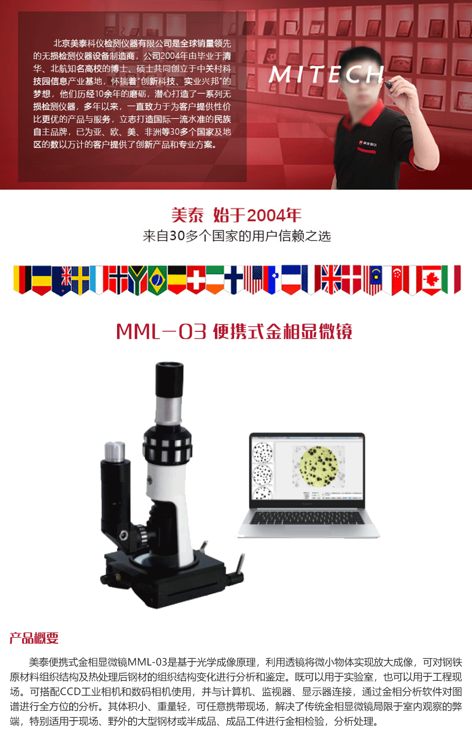 儀器特點便攜式配置,可任意攜帶現(xiàn)場,解決了傳統(tǒng)的金相顯微鏡局限于室內(nèi)觀察的弊端;