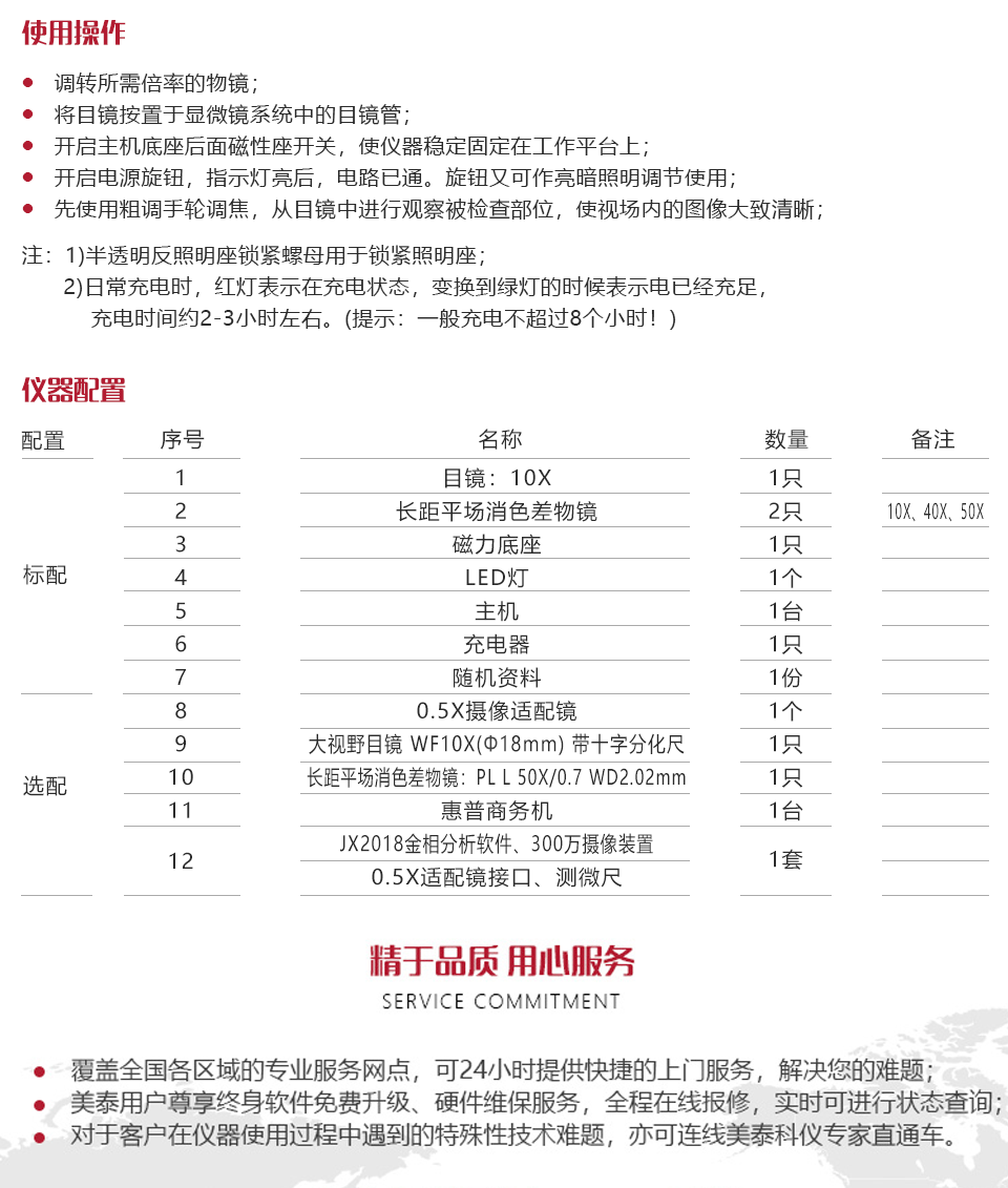 儀器特點便攜式配置,可任意攜帶現(xiàn)場,解決了傳統(tǒng)的金相顯微鏡局限于室內觀察的弊端;