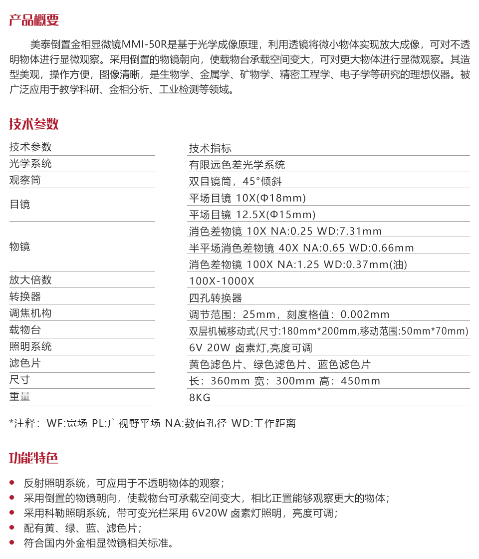 儀器特點反射照明系統(tǒng),可應(yīng)用于不透明物體的觀察;