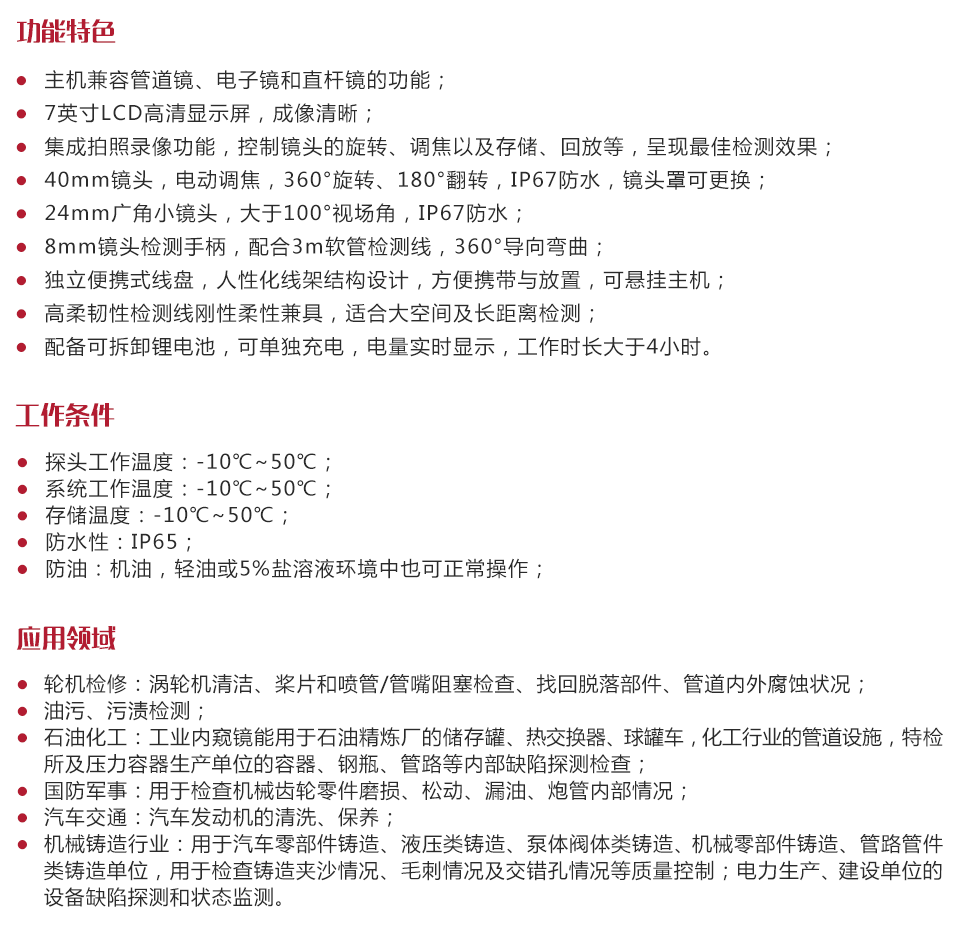 儀器特點(diǎn)主機(jī)兼容管道鏡、電子鏡和直桿鏡的功能;