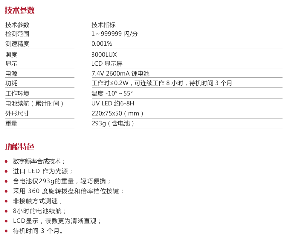 | 檢測(cè)范圍 | 1~999999 閃/分 |