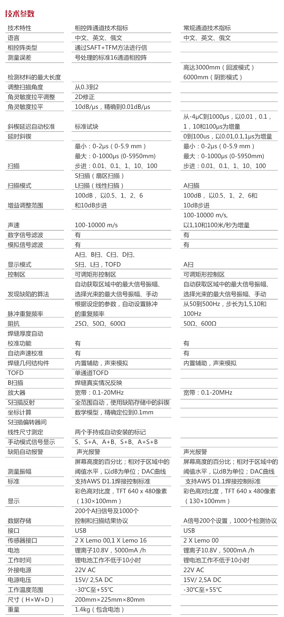 | 通道類型 | 標(biāo)準(zhǔn)16通道相控陣 |