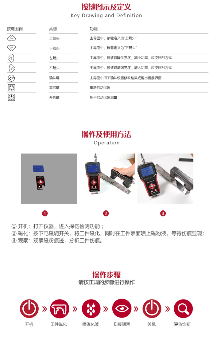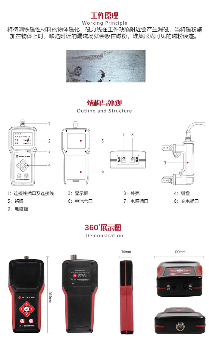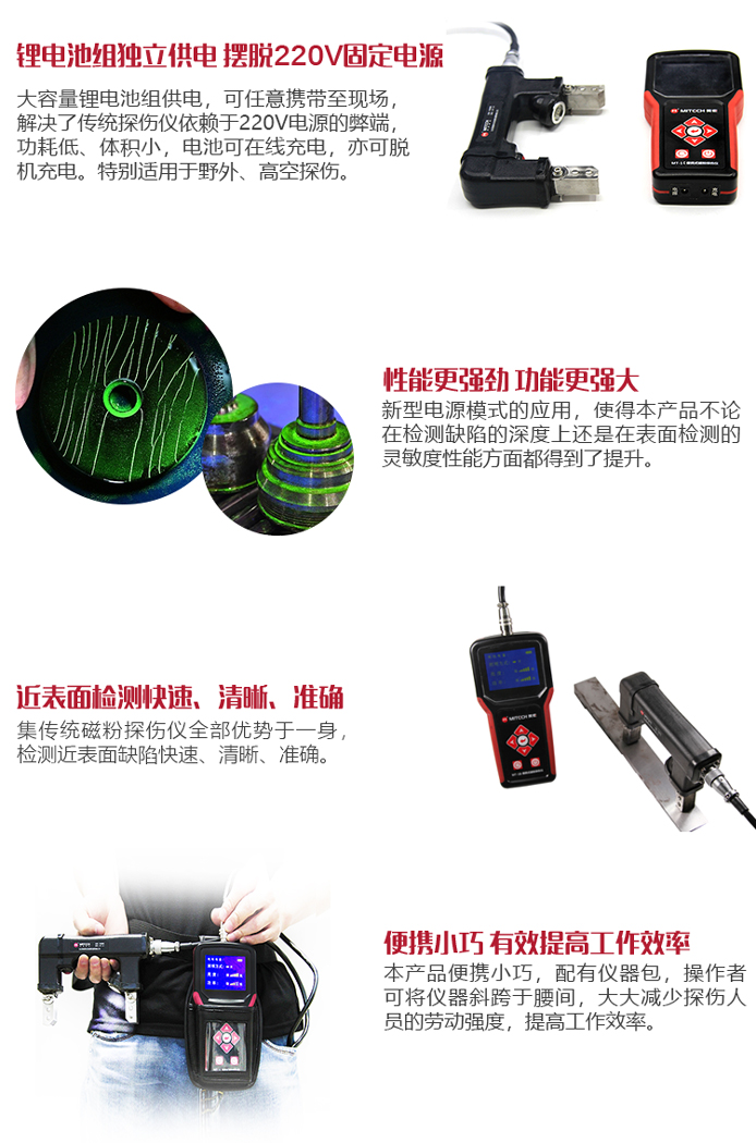 ?新型電源模式的應(yīng)用,使本產(chǎn)品不論在檢測(cè)缺陷的深度還是在檢測(cè)表面的靈敏度方面都得到了提升;