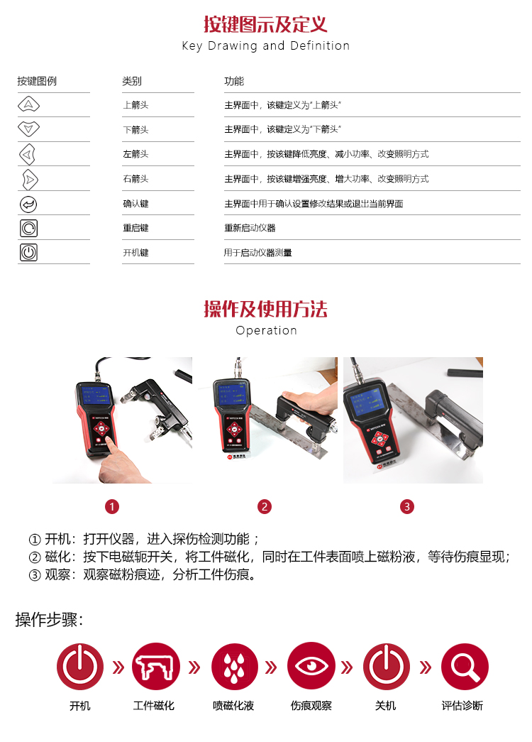 ?新型電源模式的應(yīng)用,使本產(chǎn)品不論在檢測(cè)缺陷的深度還是在檢測(cè)表面的靈敏度方面都得到了提升;