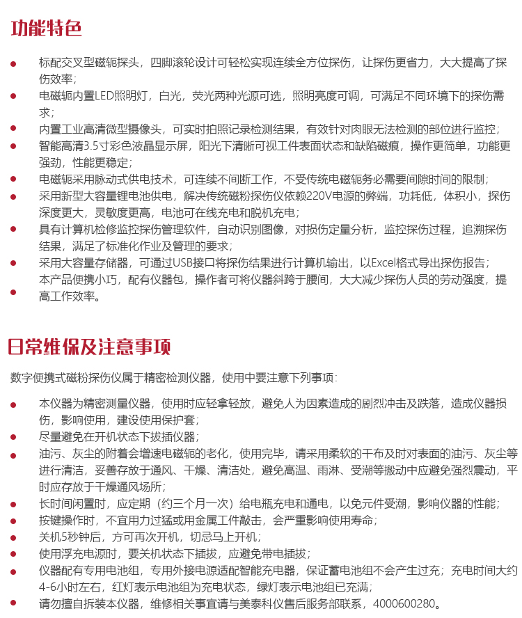 儀器的保養(yǎng)與維護(hù)數(shù)字便攜式磁粉探傷儀屬于精密檢測(cè)儀器,使用中要注意下列事項(xiàng):