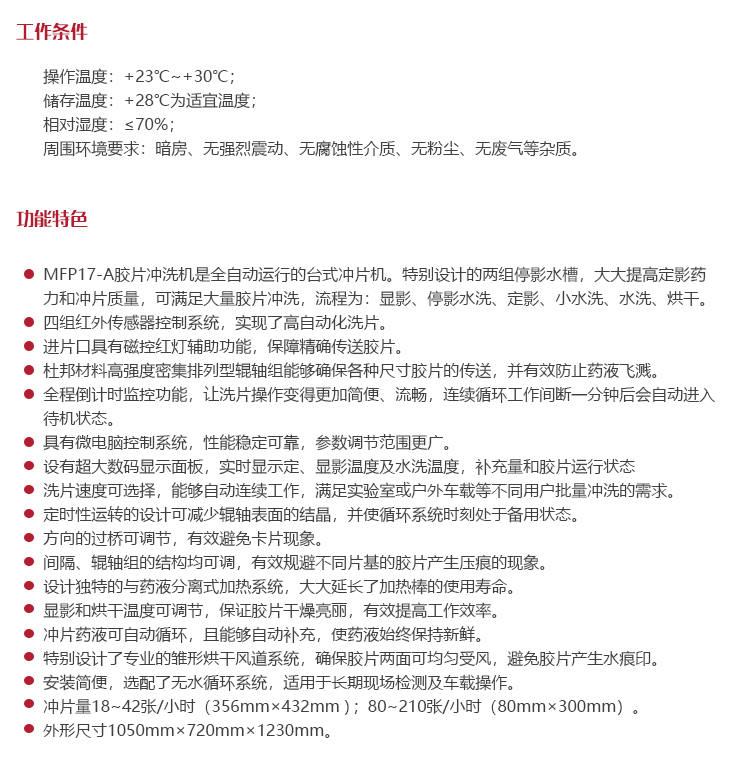 功能用途MFP17-A膠片沖洗機(jī)是全自動(dòng)運(yùn)行的臺(tái)式?jīng)_片機(jī)。