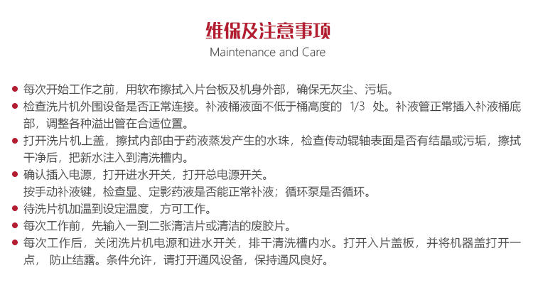 操作人員應(yīng)嚴(yán)格按照膠片沖洗規(guī)定,選用合格的高溫快顯機(jī)洗工業(yè)藥水。選用藥水應(yīng)在包裝處注明高溫快顯機(jī)洗標(biāo)志,配比要求請(qǐng)按照藥業(yè)廠家說明配比,膠片沖洗說明和藥液沖洗說明相吻合。我們建議,客戶應(yīng)選擇有溶液機(jī)洗說明的高溫快顯藥水。