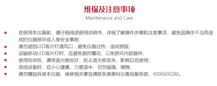請勿擅自拆裝本儀器,維修相關事宜請聯(lián)系美泰科儀售后服務部,4000600280。