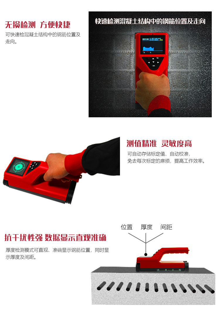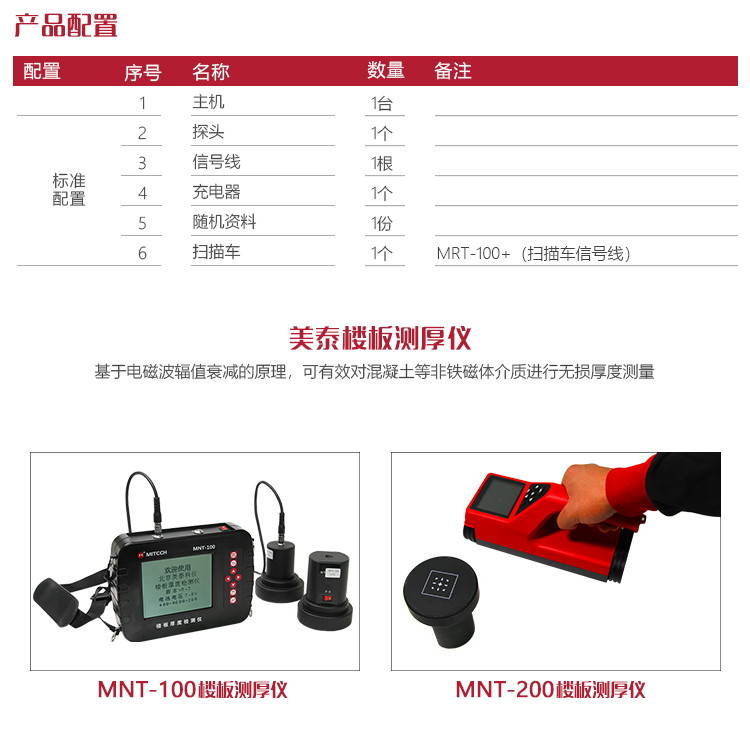 產(chǎn)品概述美泰MNT-100樓板測(cè)厚儀,基于電磁波幅值衰減的原理,可有效對(duì)混凝土等非鐵磁體介質(zhì)進(jìn)行無(wú)損厚度測(cè)量。其體積小、重量輕,易于攜帶,使用時(shí),將發(fā)射探頭和接收探頭分別置于被測(cè)物體的兩相對(duì)測(cè)試面,依據(jù)接收信號(hào),即刻測(cè)出厚度值。其測(cè)值速度快、測(cè)量精度高、性能穩(wěn)定可靠,被廣泛應(yīng)用于建筑施工質(zhì)量監(jiān)控檢測(cè)等領(lǐng)域,是保障生命財(cái)產(chǎn)安全必備的專(zhuān)業(yè)精密檢測(cè)儀器。