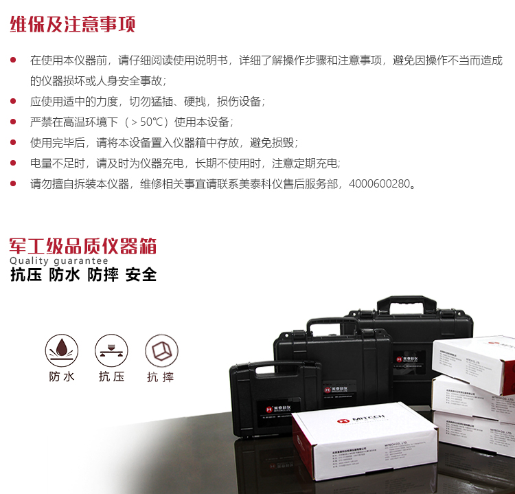 l 請(qǐng)勿擅自拆裝本儀器,維修相關(guān)事宜請(qǐng)聯(lián)系美泰科儀售后服務(wù)部,4000600280。