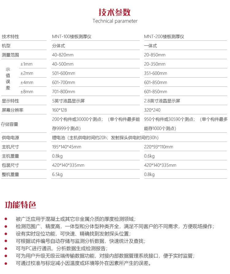 | 大量程模式(厚物檢測) | 6-200mm |