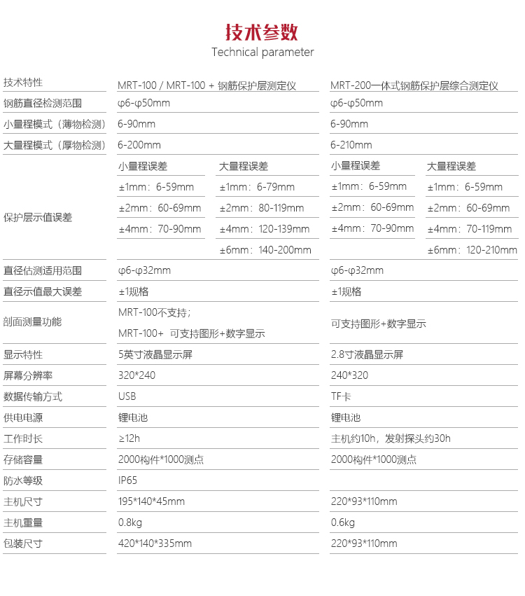 產(chǎn)品概述美泰MRT-200一體式鋼筋保護(hù)層測(cè)定儀,基于電磁感應(yīng)原理,采用一體化便攜式設(shè)計(jì),可快速無(wú)損檢測(cè)鋼筋位置、布筋情況,根據(jù)已知直徑檢測(cè)混凝土保護(hù)層厚度及鋼筋直徑。其測(cè)量速度快、測(cè)量精度高、性能穩(wěn)定可靠,適用于對(duì)現(xiàn)有鋼筋混凝土工程及新建鋼筋混凝土結(jié)構(gòu)施工質(zhì)量的檢測(cè),也可對(duì)非磁性和非導(dǎo)電介質(zhì)中的磁性體及導(dǎo)電體的位置進(jìn)行檢測(cè),如墻體內(nèi)的電纜、水暖管道等。是一款專業(yè)多功能智能型精密無(wú)損檢測(cè)儀器。