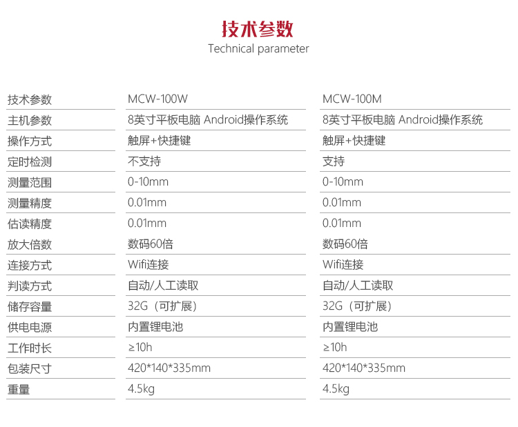 | 定時(shí)檢測 | MCW-100W不支持 MCW-100M支持 |