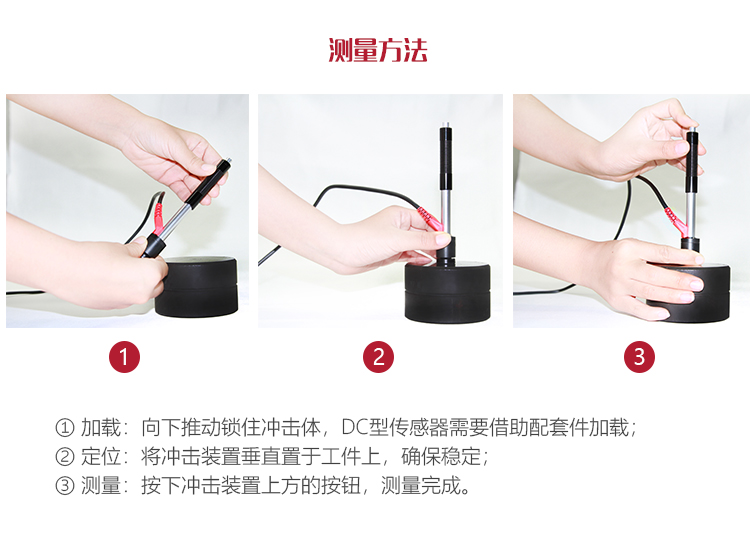 向下推動(dòng)加載套鎖住沖擊體;對(duì)于DC型沖擊裝置,則可將加載桿吸于試驗(yàn)表面,將DC型沖擊裝置插入加載桿,直到停止位置為止,此時(shí)就